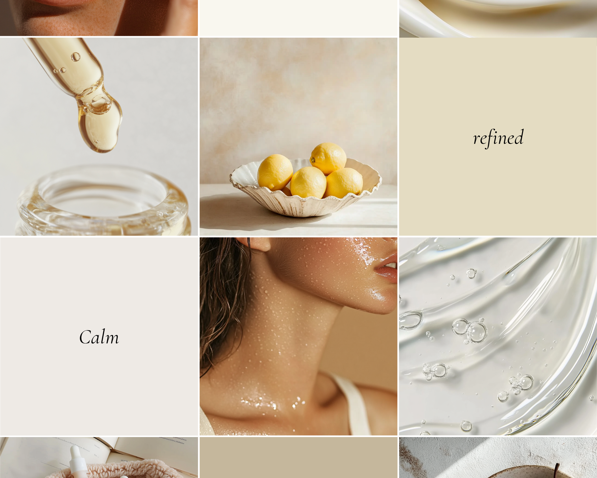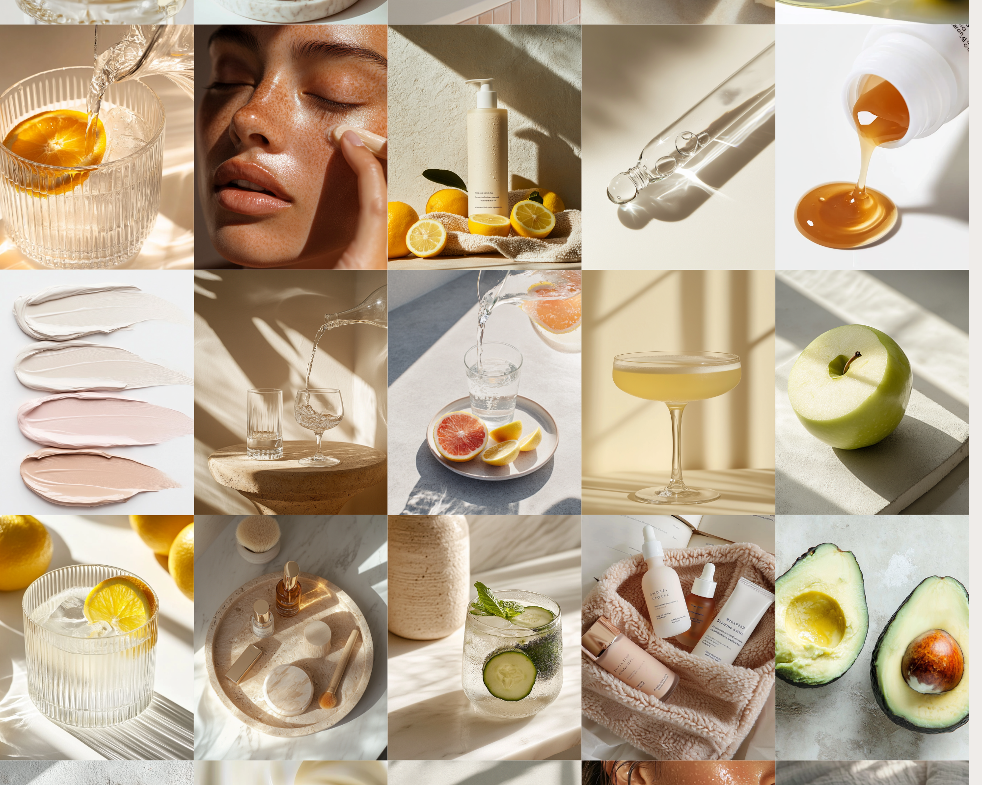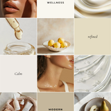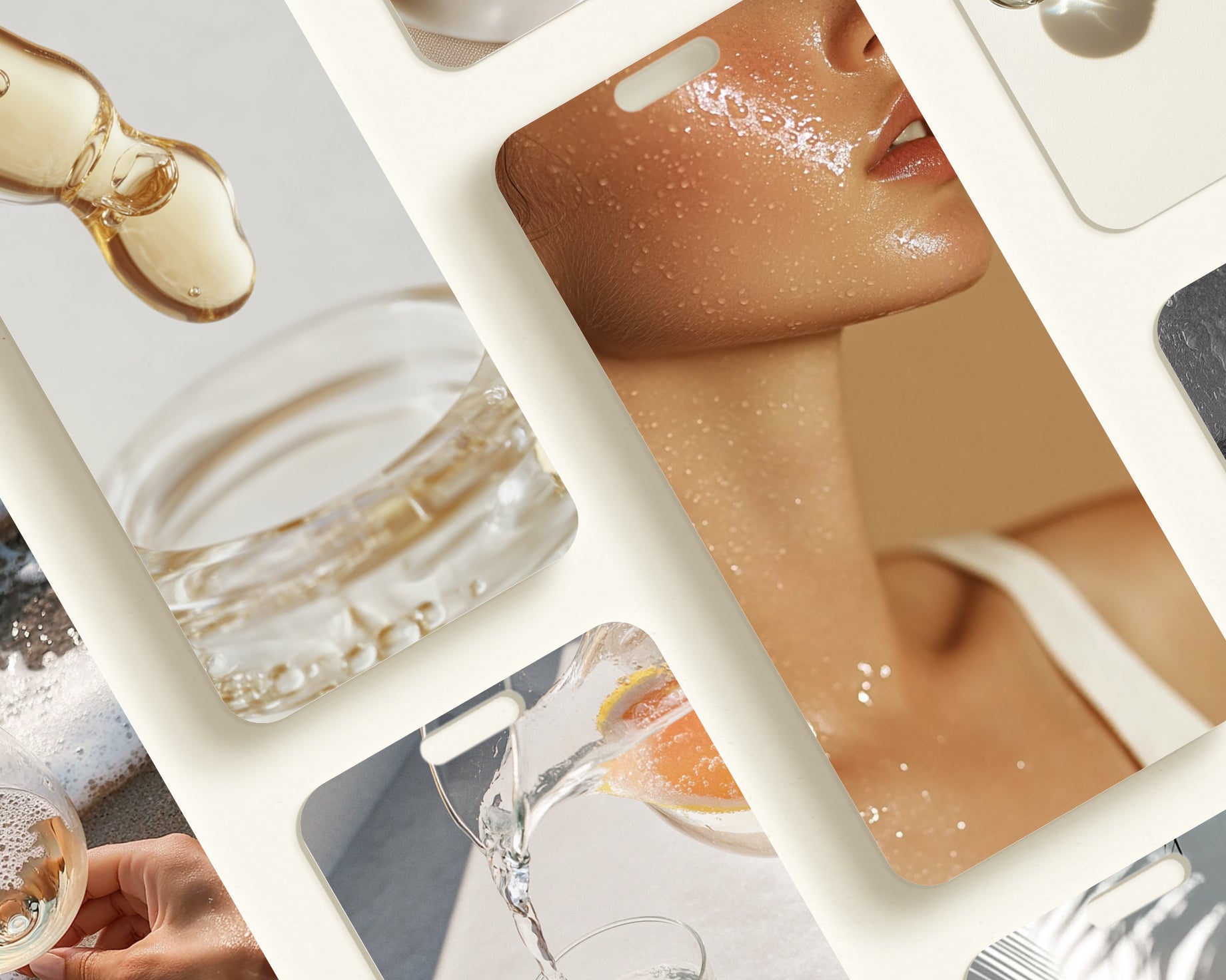 • Wellness-focused themes: skincare, fresh ingredients, beauty rituals, and natural textures